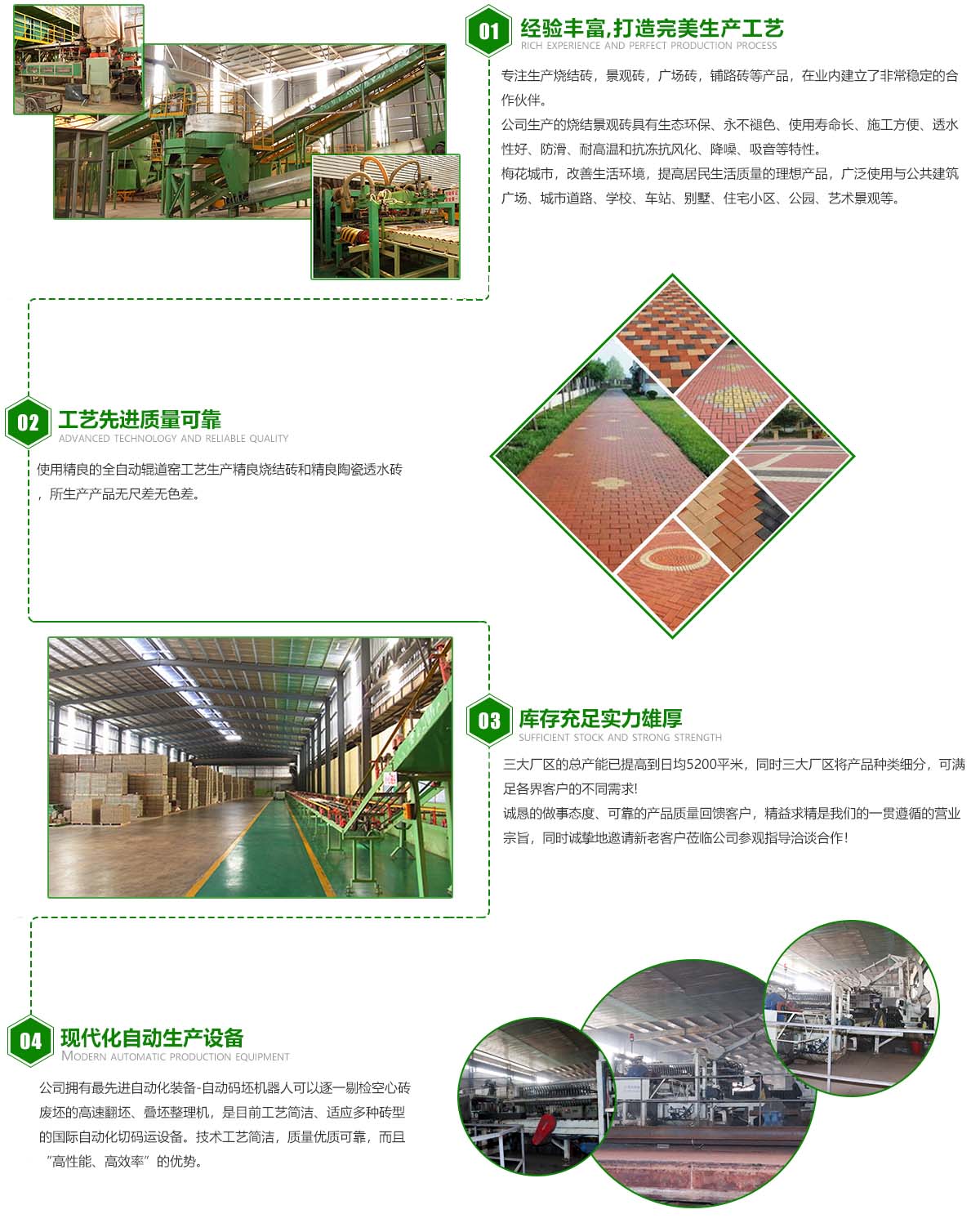 專注生產(chǎn)燒結(jié)磚,景觀磚,廣場磚,鋪路磚等產(chǎn)品,在業(yè)內(nèi)建立了非常穩(wěn)定的合作伙伴。 公司生產(chǎn)的燒結(jié)景觀磚具有生態(tài)環(huán)保、輕易不褪色、使用壽命長、施工方便、透水性好、防滑、耐高溫和抗凍抗風化、降噪、吸音等特性。 美化城市,改善生活環(huán)境,提高居民生活質(zhì)量的理想產(chǎn)品,廣泛使用與公共建筑廣場、城市道路、學校、車站、別墅、住宅小區(qū)、公園、藝術(shù)景觀等。